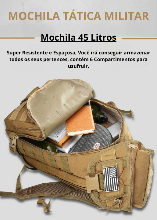 Mochila Tática Militar 45 Litros Oxford 6000D Reforçada